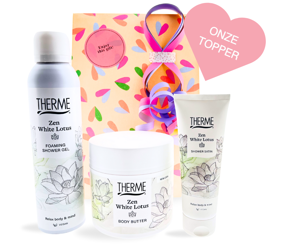 Van al onze cadeausets is de Therme Cadeauset Zen White Lotus Douche & Body wel echt onze topper! De populairste geur van Therme verzacht en verwent het lichaam weldadig met de serene en exotische geurbeleving van de witte lotus!