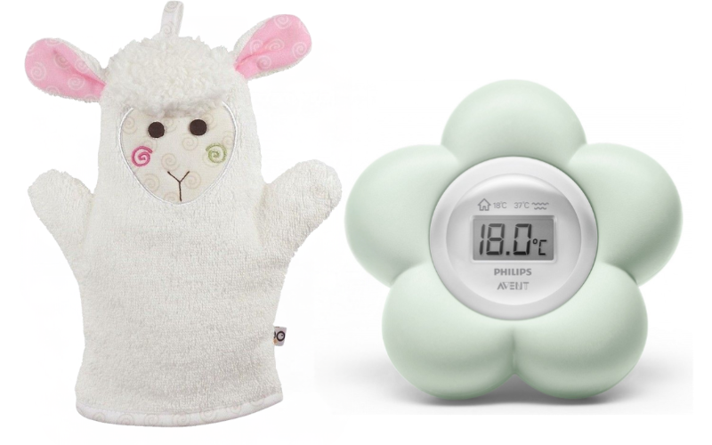 Maak elke badmoment leuk en veilig met deze cadeauset! De Avent thermometer digitaal voor bad & slaapkamer zorgt ervoor dat het je zeker weet dat het water nooit te warm is, en de Zoocchini washand Lam maakt er een echt feestje van.