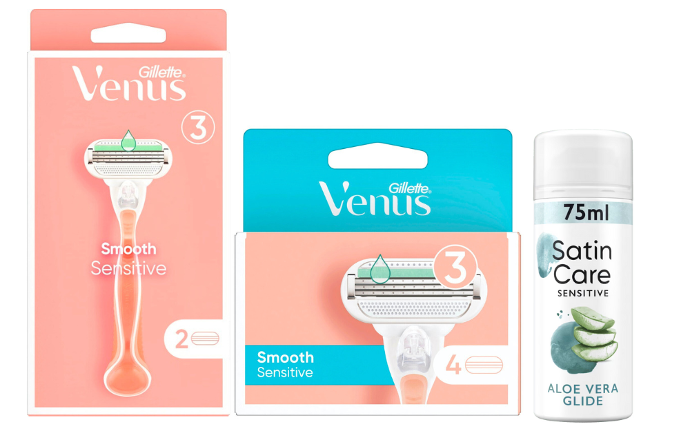 Glad & zacht met Gillette Venus Smooth Sensitive. Het scheermesje heeft 3 ingebouwde mesjes voor een gladde, zachte scheerbeurt met langdurig resultaat. Speciaal voor de gevoelige huid.