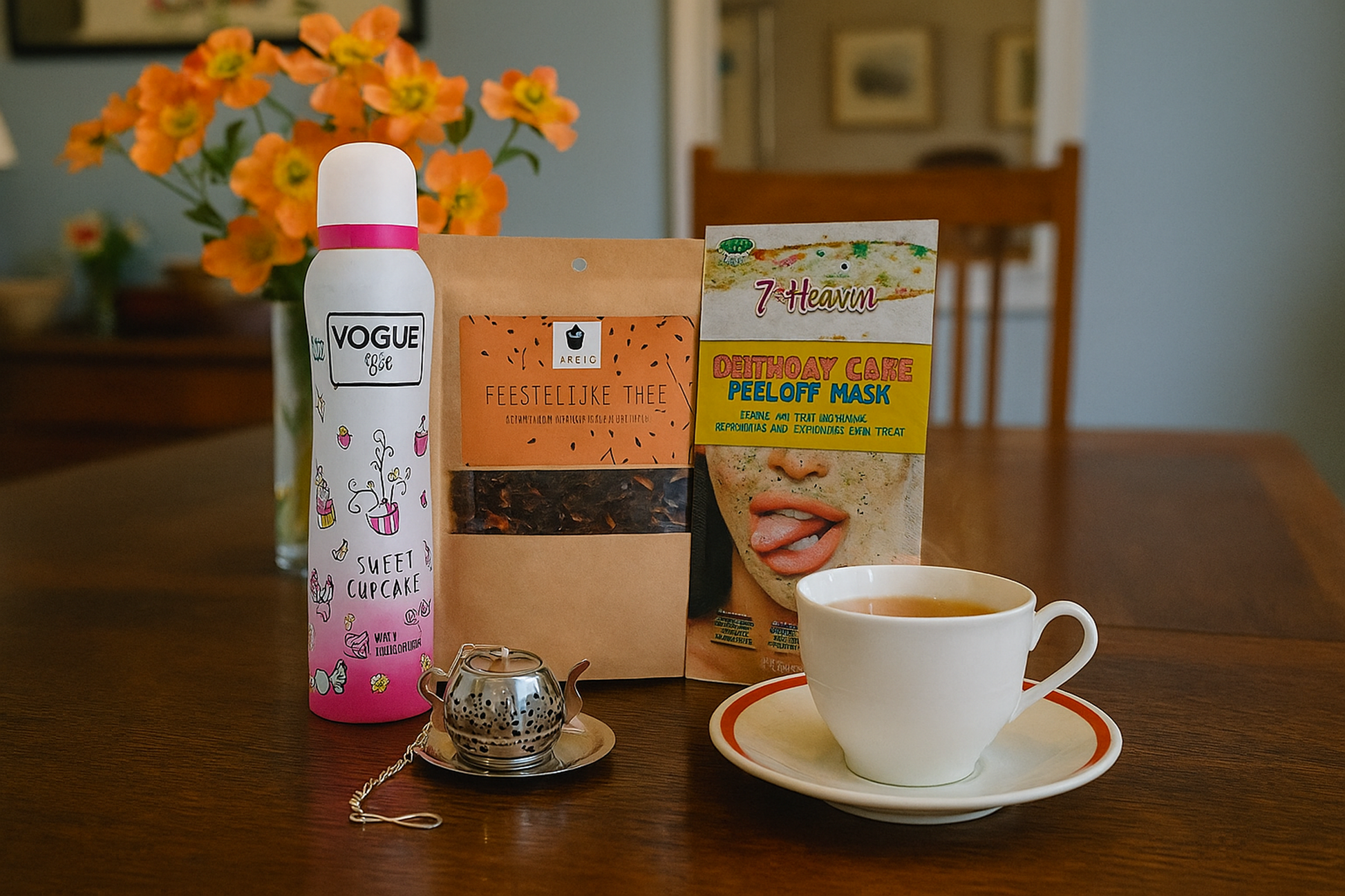 Een compleet en feestelijk cadeau dat verzorging, ontspanning en een gezellige thee-ervaring combineert. Met natuurlijke producten en vrolijke extra’s is deze set perfect om iemand te verrassen bij een verjaardag of andere speciale gelegenheid.